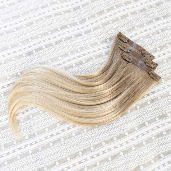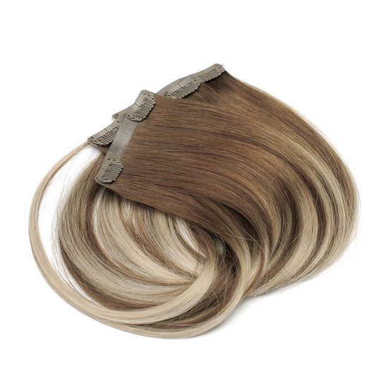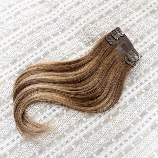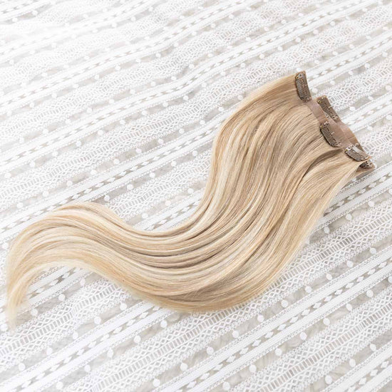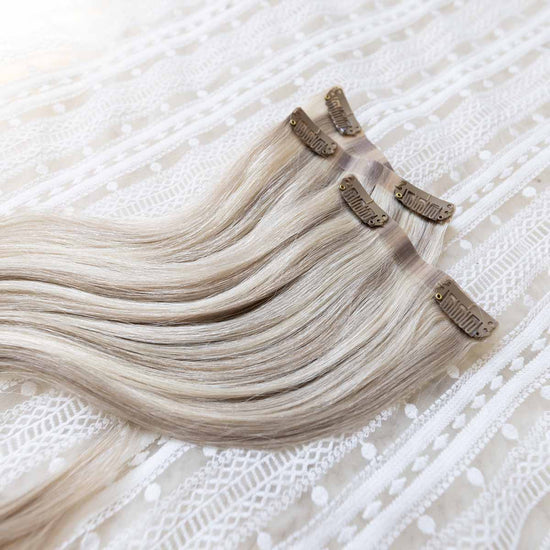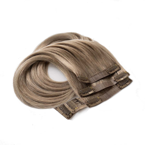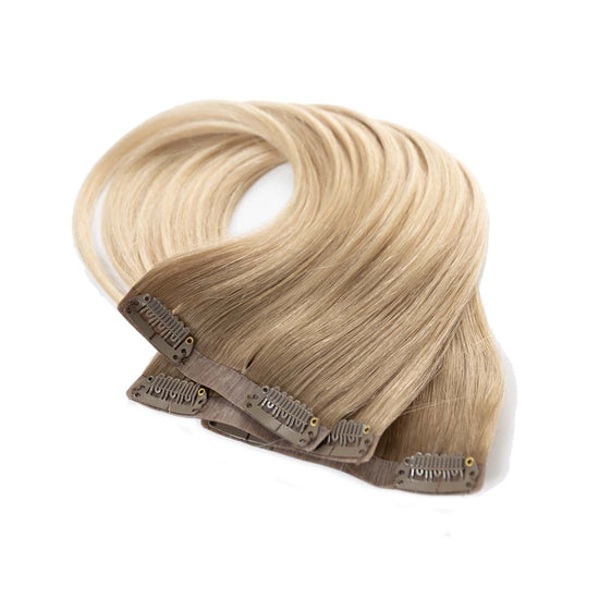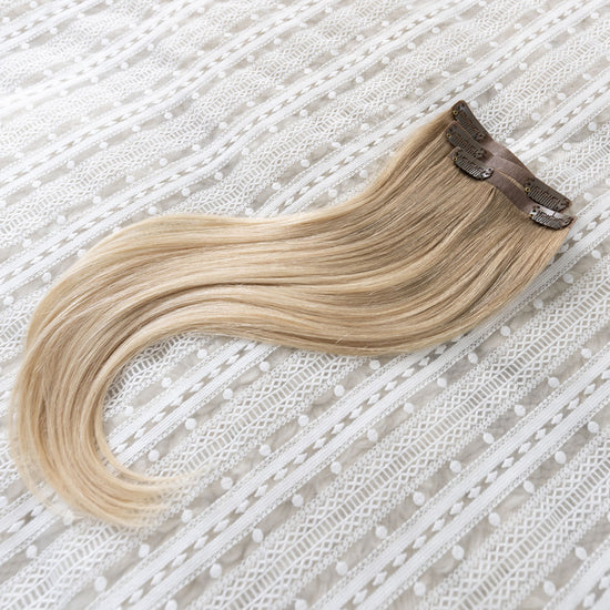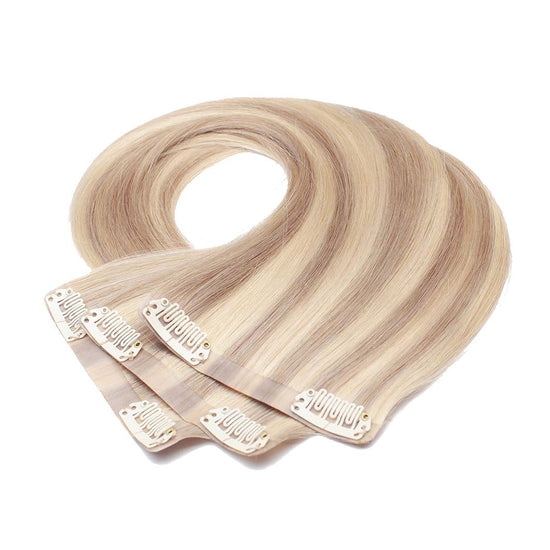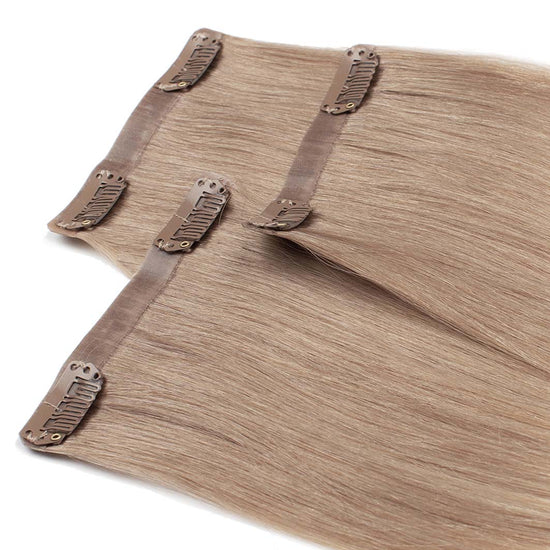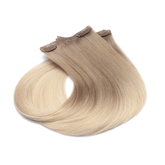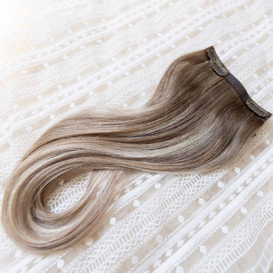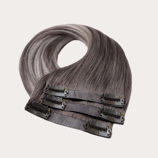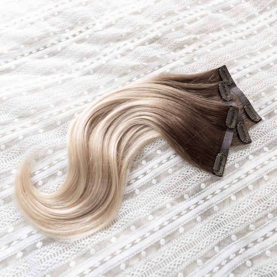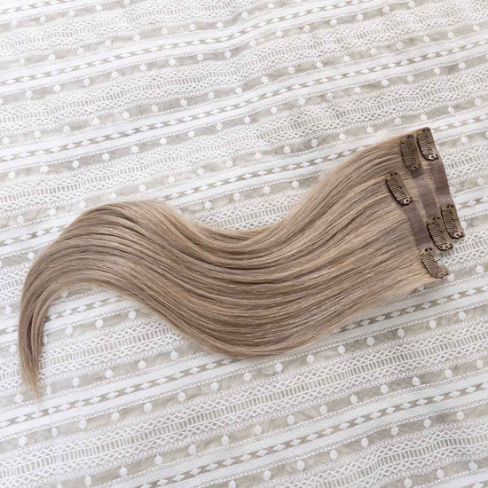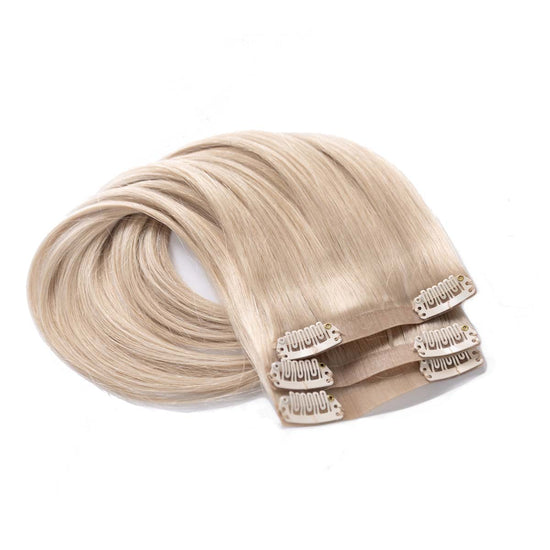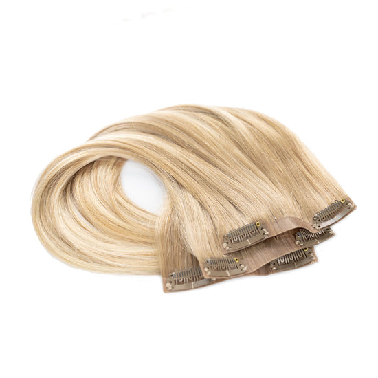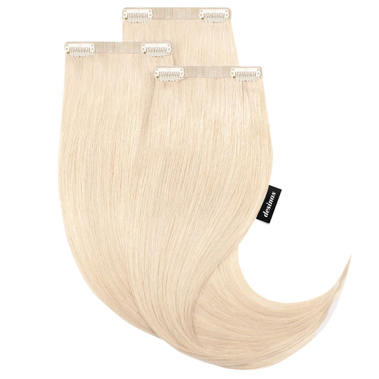 Das Seamless Clip In Extensions Set von Desinas lässt sich durch das ultraflache Silikonband völlig unauffällig im eigenen Haar verblenden. Die Extensions liegen wie bei einer dauerhaften Haarverlängerung mit Tape Extensions nah am Kopf an und tragen nicht auf.